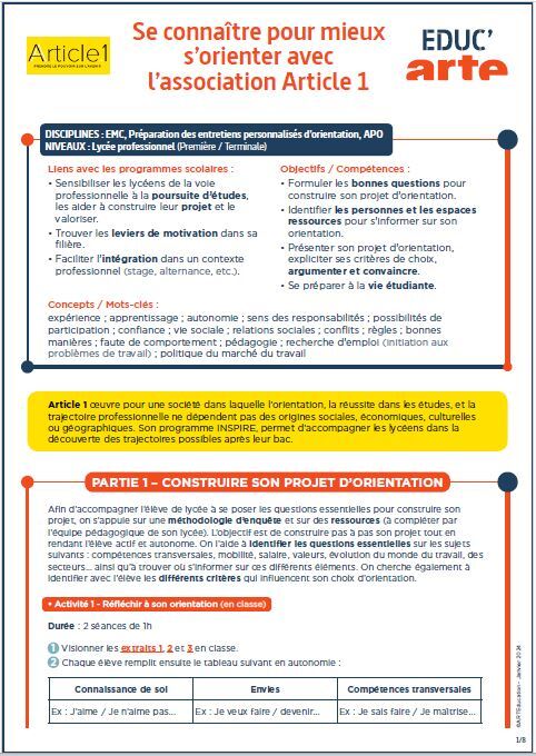 Comment formuler les bonnes questions pour construire son projet d’orientation ? Comment identifier les personnes et les espaces ressources pour s’informer sur son orientation ? Comment présenter son projet d’orientation, expliciter ses critères de choix, argumenter et convaincre ? Comment se préparer à la vie étudiante ? Des clés vous sont proposées dans cette fiche conçue avec l'association Article 1.